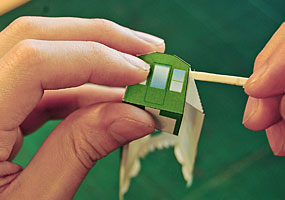 2−ヘッドライトなど、細かく小さな部分はピンセットを使うとのり付けしやすいよ。