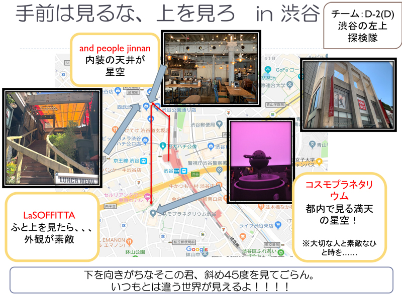 在演講中,“你想在澀谷有很多人來去的新發現嗎?我們一點一點地把我們一直光顧的澀谷的風景剪掉了”並從澀谷站開始剪掉它我們通過公園街道和西班牙斜坡介紹了一個針對Sakagami,Sakuragaoka-cho的“Cosmo Planetarium Shibuya”的課程。