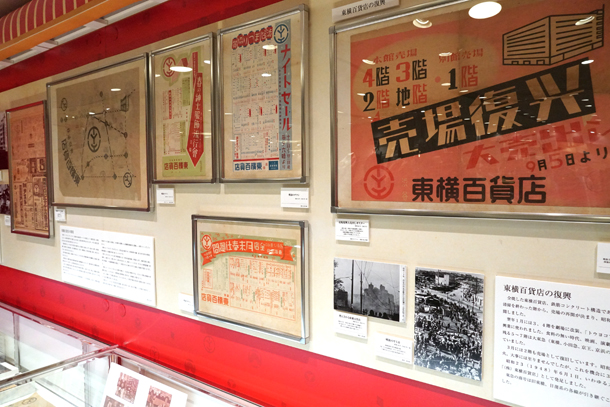 地下1階の東急フードショー壁面に掲出されている「しぶちか特設パネル」では、昭和9年から今日までの東横店の歴史を貴重な写真と共に振り返っている。約20メートル近く続く展示パネルの長さに、東横デパートがこれまで歩んできた85年の歴史の厚みを改めて実感させられるはずだ。