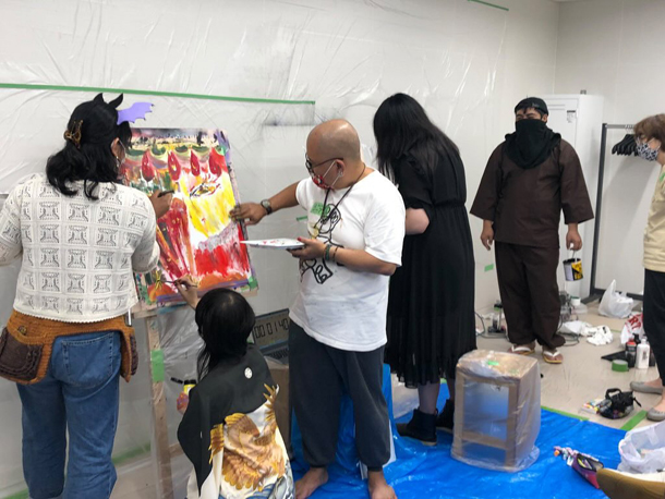 ▲通路でのライブペインティングはアーティストの作業する様子を間近で見られる貴重な機会に。