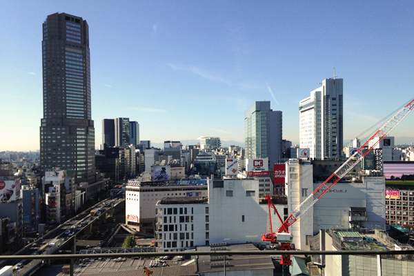 下の写真は、渋谷ヒカリエ11階から見た「渋谷の街」の風景です。澄んだ青空がとても気持ちがいいですね。注目していただきたいのは、写真中央のあたりです。