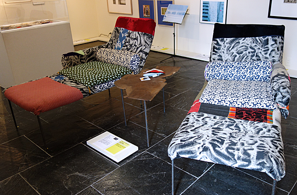 4th floor sofa work "earplugs" using the old cloth of the futon, which is exhibited in (1994, Franz West works), the can also be actually sit.