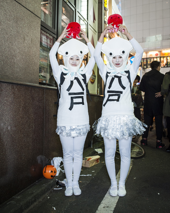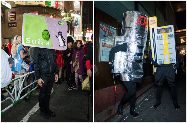 一般的にハロウィン仮装といえば、ゾンビや囚人、血だらけの看護婦などが定番であるが、最近では流行語大賞と同じく「世相・トレンド」を反映したものや、「怖さ」よりも「笑い」がとれるものを優先する人が増えているように感じる。では31日の夜、渋谷で撮影した仮装の様子を具体的にお見せしましょう。