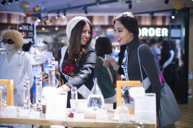 東急ハンズでは、ビューティー&コスメ売り場が一番人気。美容グッズや化粧品のバリエーションの豊富さは、美に対して並々ならぬ情熱をもつミスたちの心もがっちりと捉えた様子。店員さんから熱心に商品説明を聞く姿があちこちで見られました。パッケージに浮世絵が描かれたエッセンスマスクを大量に購入していたのは、キューバ代表のヘイディー・ファスさん。「とても日本らしいので家族や友人へのお土産にと思って」。