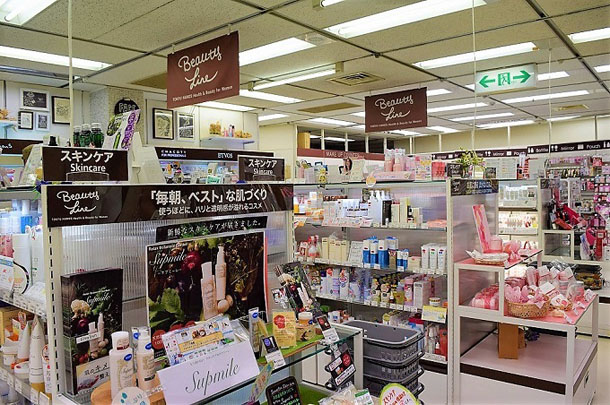 2Cフロアの一番奥、ハンドメイドコスメのコーナー。美容成分の原液など、安価で少量ずつ試せる商品などが豊富