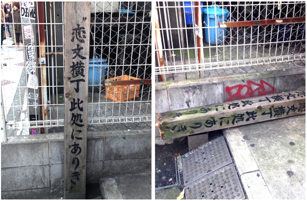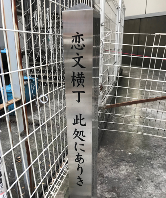 渋谷・道玄坂のプライムと文化村通り・ヤマダ電機LABI渋谷の裏側あたりに、かつて「恋文横丁」と呼ばれたエリアがあったのを、皆さんはご存知だろうか? ヤマダ電機の脇に、「恋文横丁此処にありき」と記した木製の碑がひっそりと立っているが、昨年7月に老朽化に伴って、新たにステンレス製の碑が再建された。