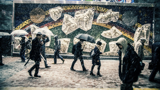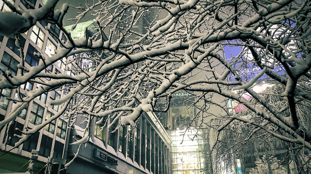 「渋谷、ハレとケ」は、渋谷の日常と非日常を写真で切り撮るフォトギャラリー。今回のテーマは「静かでスローな渋谷」。2014年2月以来、4年ぶりの大雪に見舞われた渋谷。いつもは多くの人びとが足早に行き交う渋谷スクランブル交差点も、今日は足元に気をつけながら怖々と歩く姿が目立った。人びとの声や街頭ディスプレイ、車のクラクションなど、都会のノイズはしんしんと降る雪がすべて吸収し、いつもとは異なる「静かでスローな渋谷」が垣間見られた。歩道と道路の境目はもはや判別がつかず、ここが大都会・渋谷とは到底思えぬ、何とも不思議な銀世界が広がっていた。